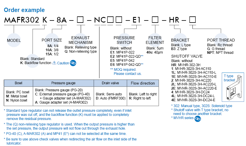 For Air units MA**302, MA**400, MA**401, MA**403, MA**501 series.Ordered with filter together.