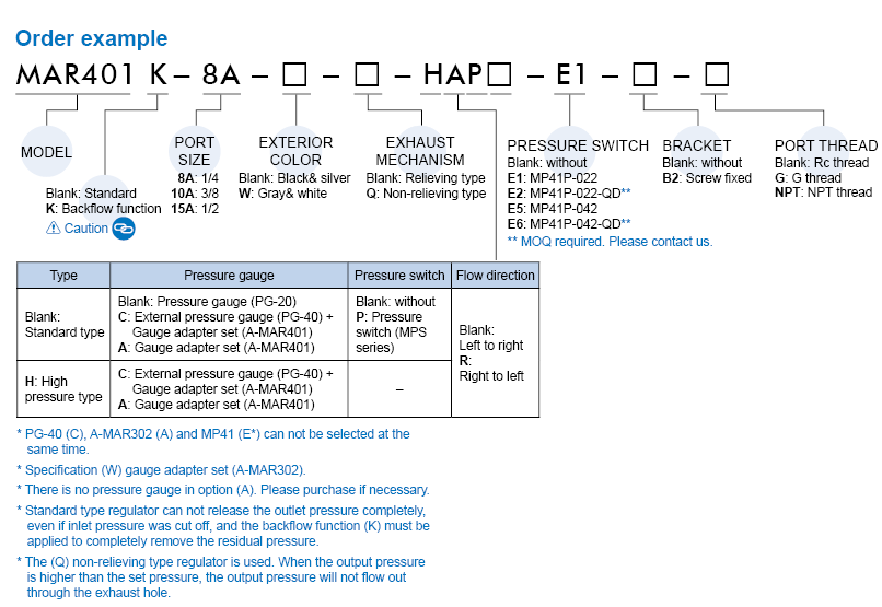 Port size: 1/16, 1/8, 1/4, Operating pressure range: 0~2 MPa.