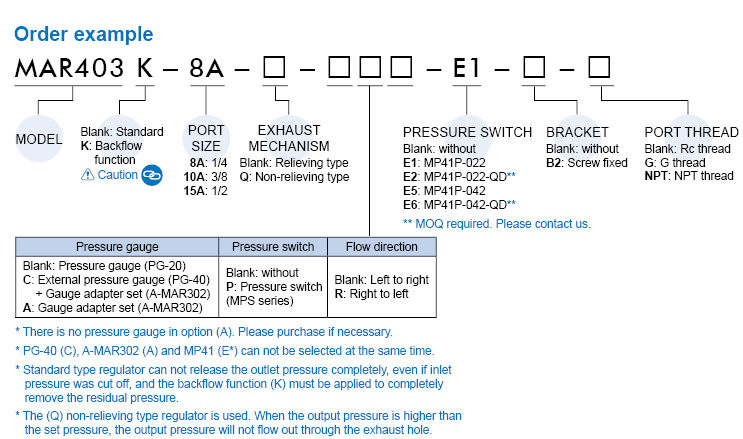 Port size: 1/16, 1/8, 1/4, Operating pressure range: 0~2 MPa.