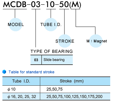 MAC series:Miniature,Porous type,Long stroke ; MAD series:Adjustable,Porous adjustable type ; MACD series:Double cushion.