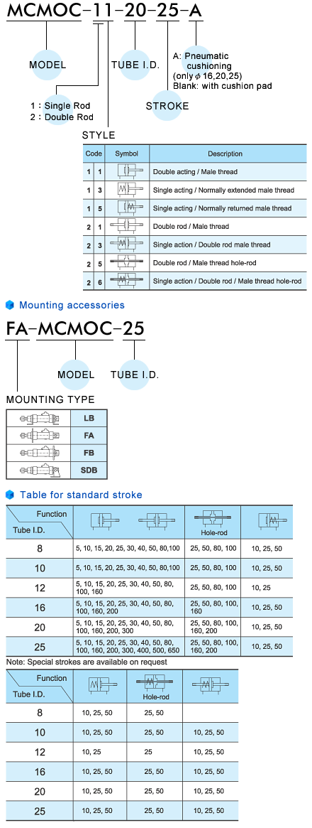 Tube I.D. φ 8, 10, 12, 16, 20, 25 (mm), Flat design enables non rotation of rod. ISO standard dimensions. Magnetic as standard.