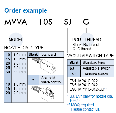 Vacuum Generator MVVA|Nozzle dia. 1.0 ~ 3.0 mm