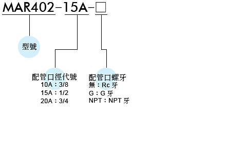 配管口径尺寸: R1/16, R1/8, R1/4,使用压力范围: 0~2 MPa。
