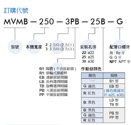 配管口徑尺寸: M5, R1/8, 1/4, 3/8, 1/2, 3/4, 1,S 型及 B 型。